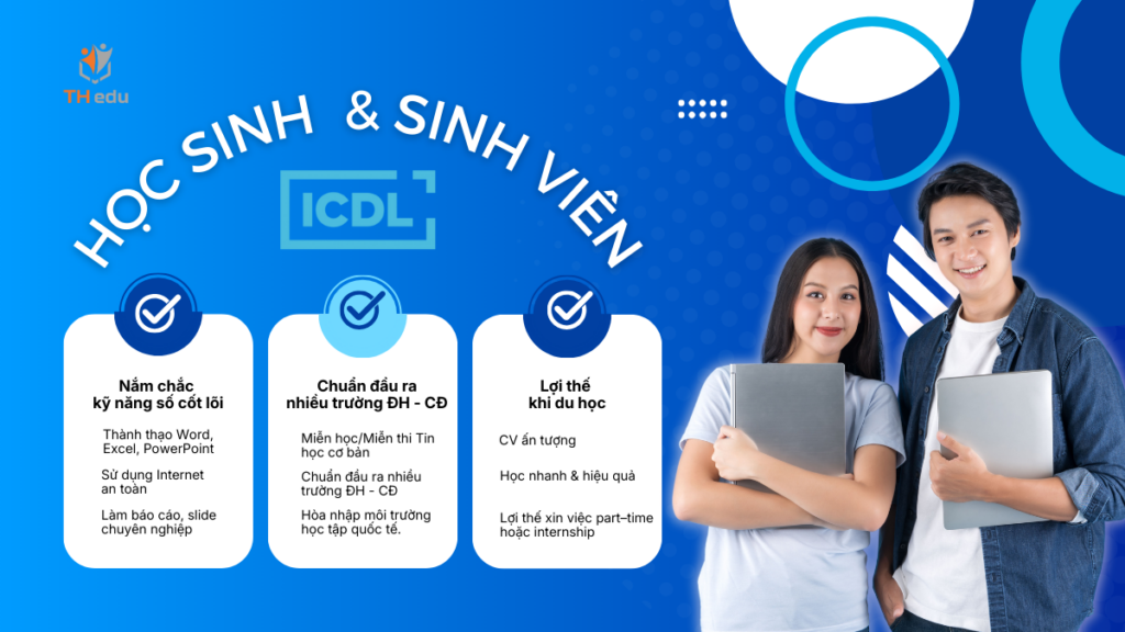 Đối với học sinh – sinh viên, ICDL giúp các em làm chủ các kỹ năng số cốt lõi, hỗ trợ hiệu quả trong quá trình soạn thảo bài tập, làm báo cáo hay thuyết trình.